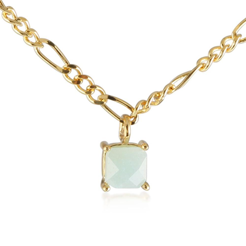 مقاس الحجر 0.5 سم سلسال حجر الاكوا مارين المصنوع من الفولاذ المطلي ذهب مصمم خصيصا ليكمل اناقتك طول السلسال 41 سم